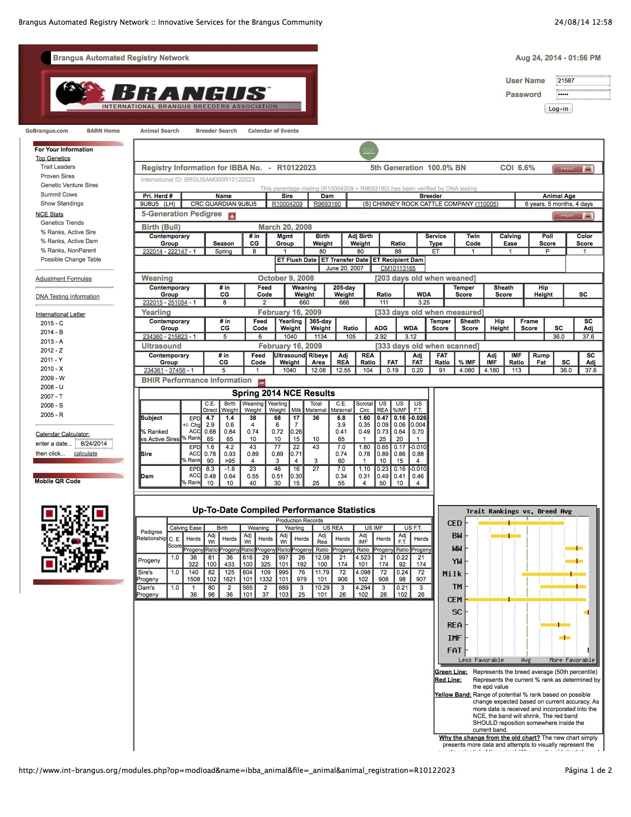 Esta es una reseña CRC GUARDIAN 9U8U5, el padre de nuestro toro.